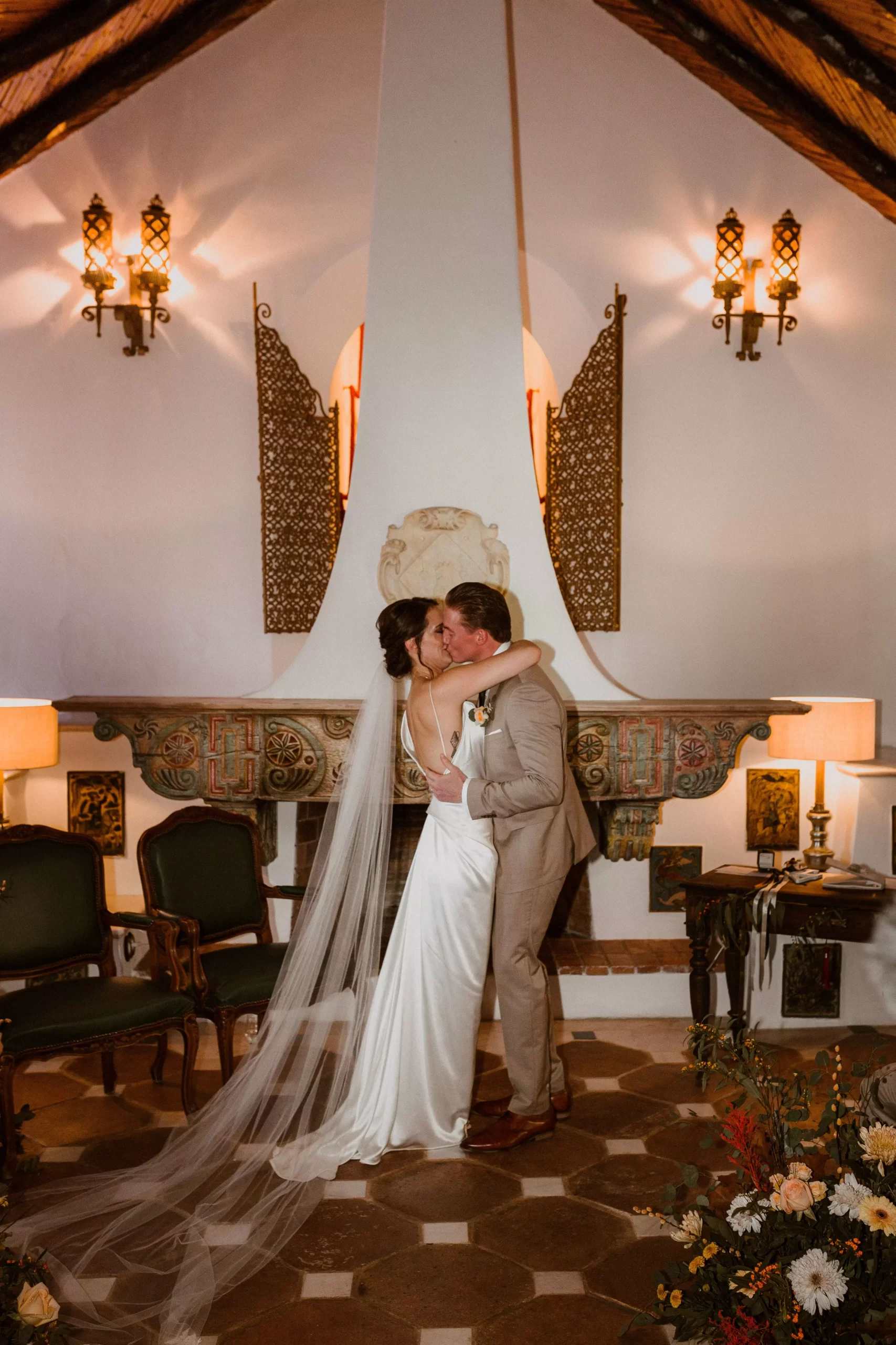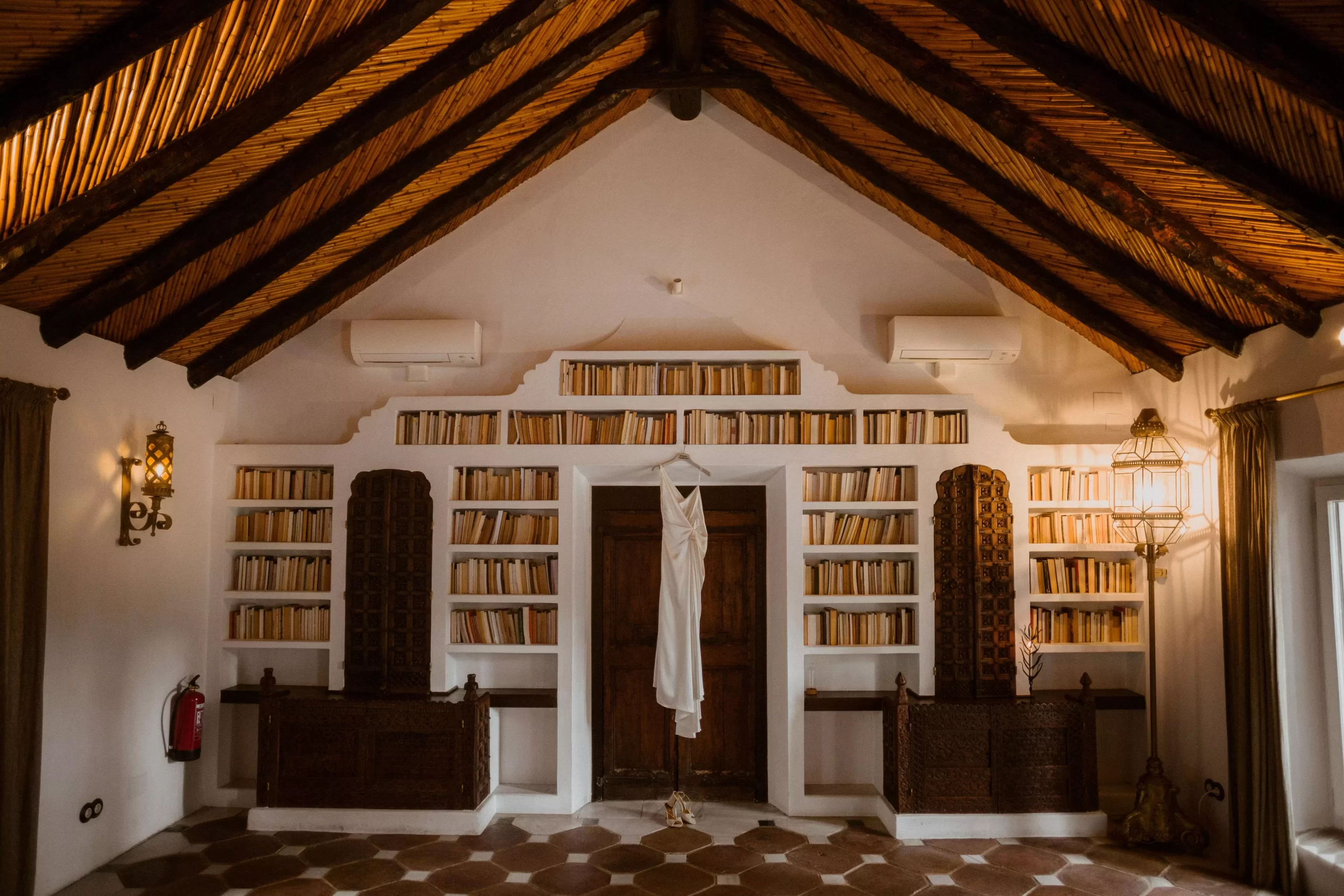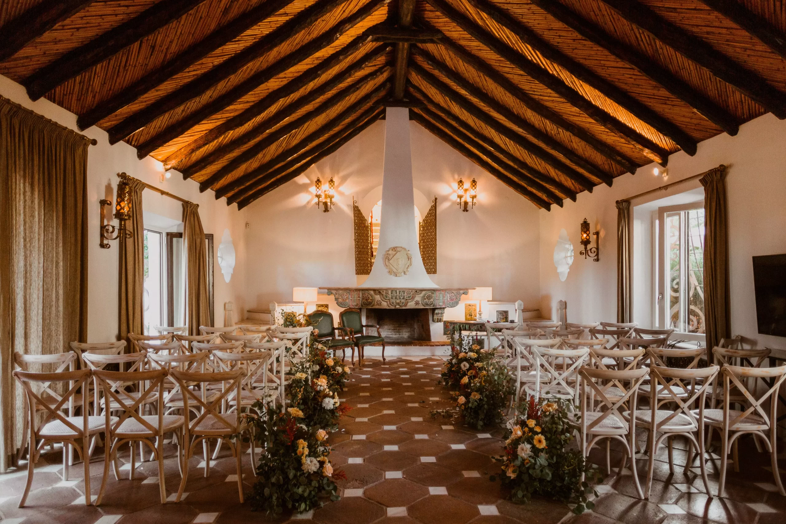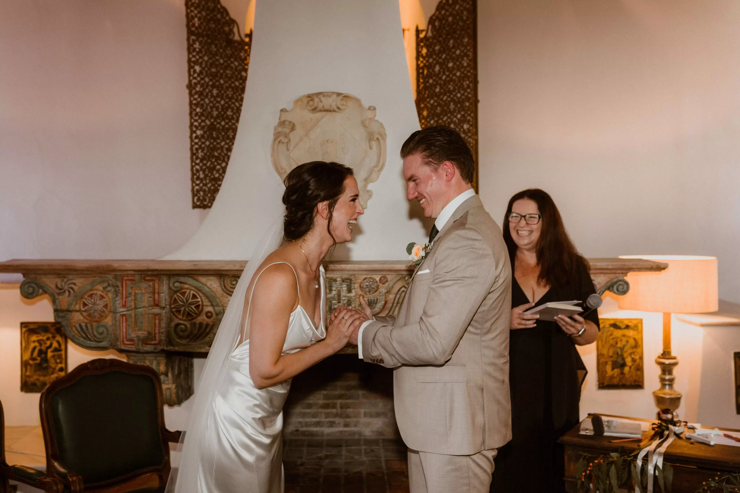 When a few raindrops appeared during the ceremony, we had to alter our plans and conduct the wedding indoors, which was held in the lovely and historic Cortijo living room.