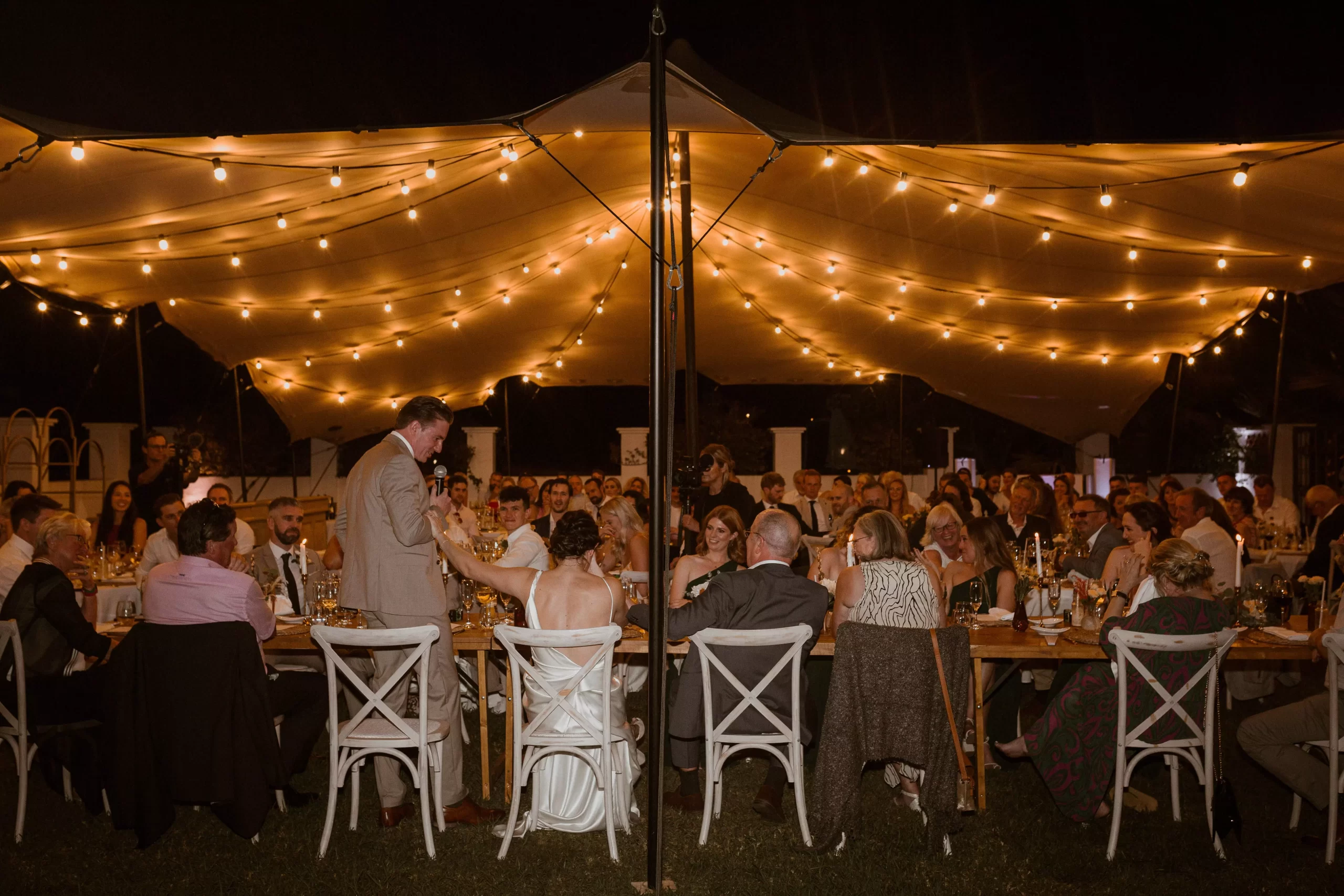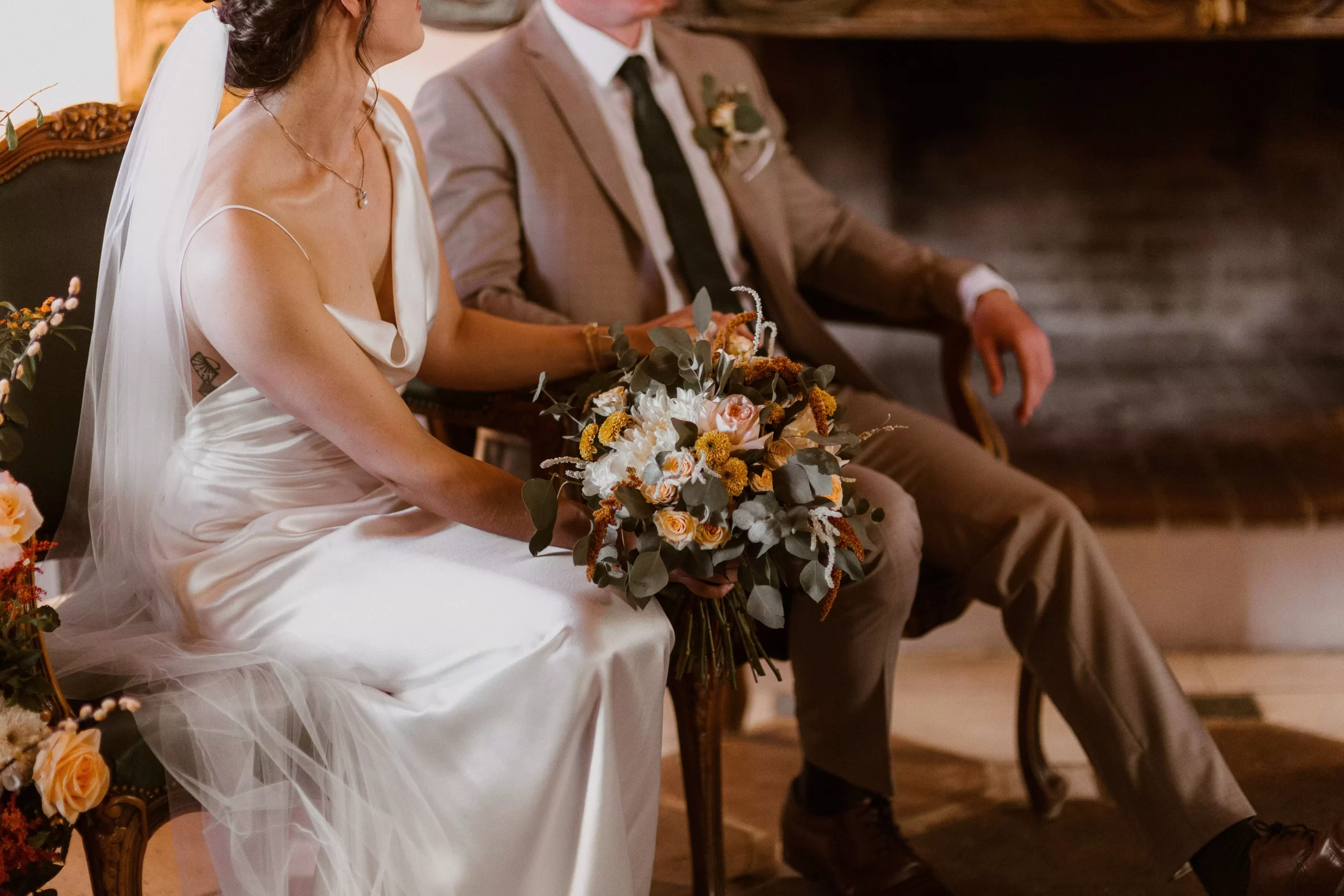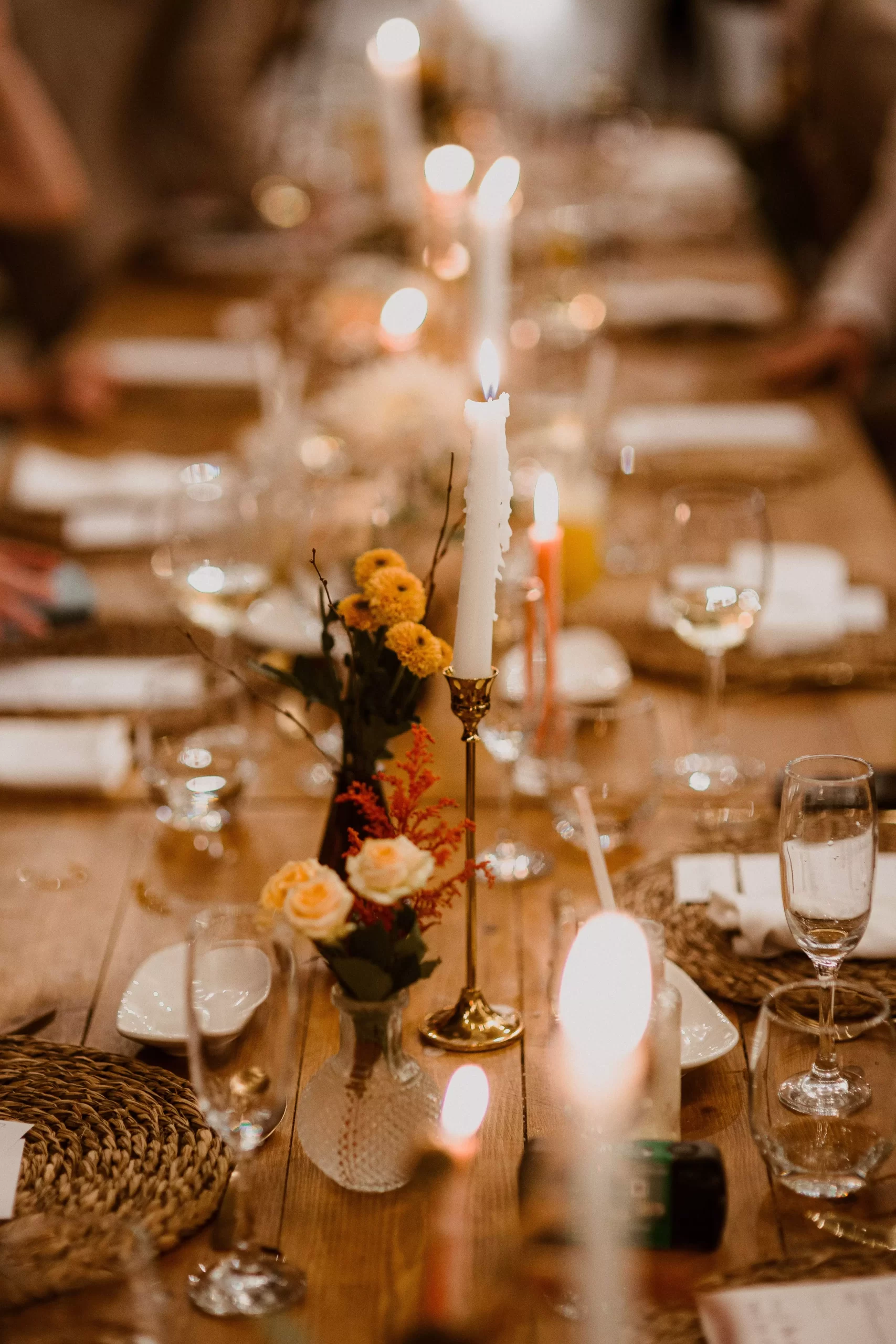 The bohemian and festival style was apparent in the decorations, flowers, lighting, and candles. The autumnal colour scheme enhanced the romantic and cosy atmosphere.